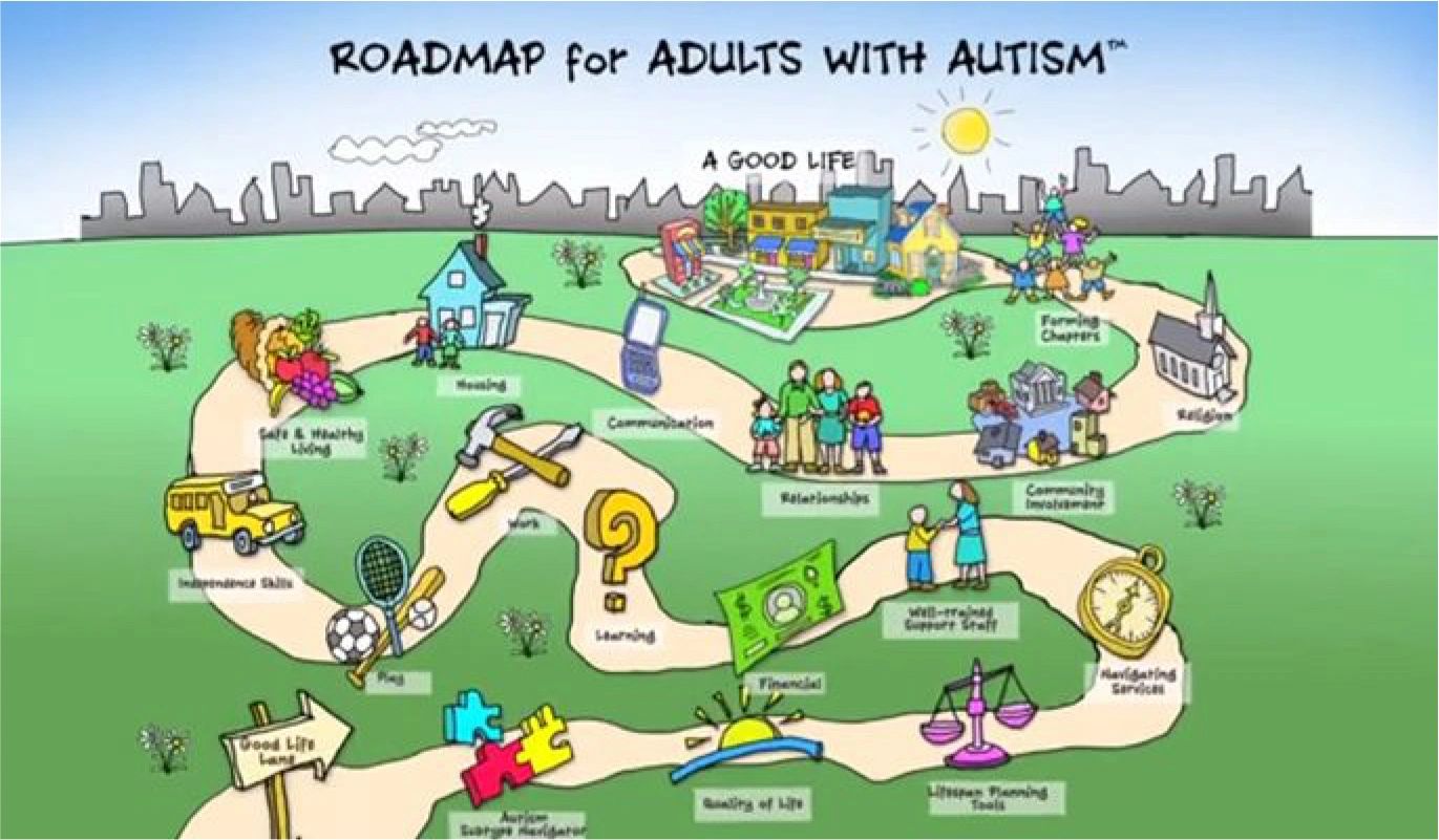 The Foundation for Autism Support and Training (FAST) can help you find resources and navigate the Roadmap for Adults with Autism (below).